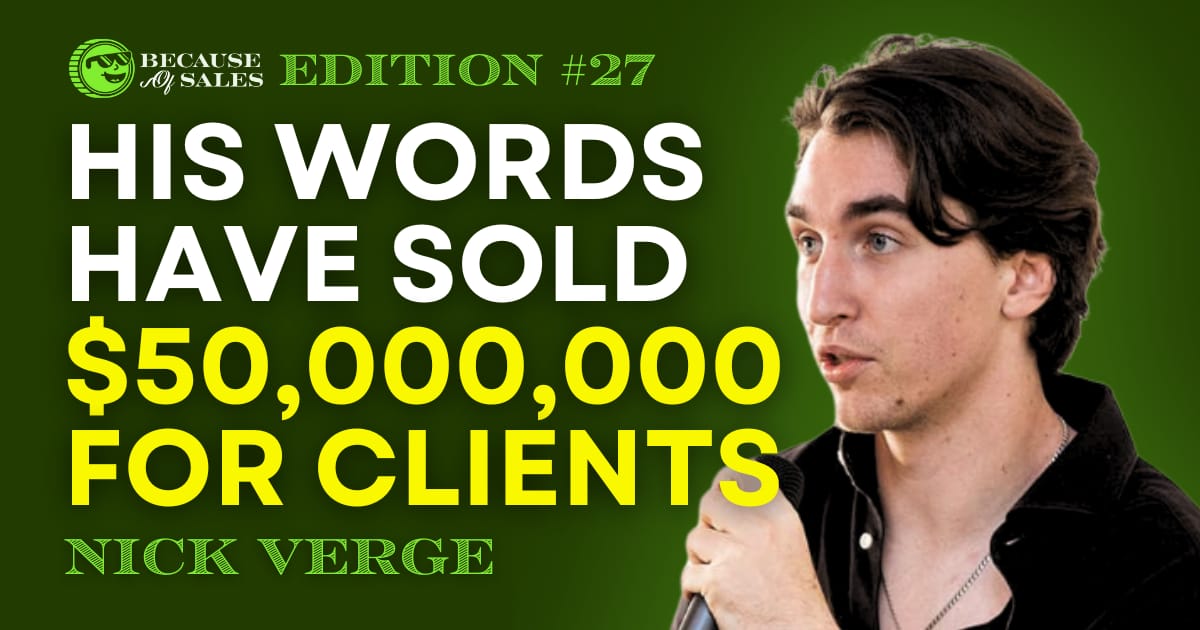Nicholas Verge is an Austin-based founder and performance marketer who partners with coaches and consultants to scale high-ticket offers at Copy and Systems. His clients (like Alex Jones, Jordan Belfort, and more) have generated over $50M using his words to sell.